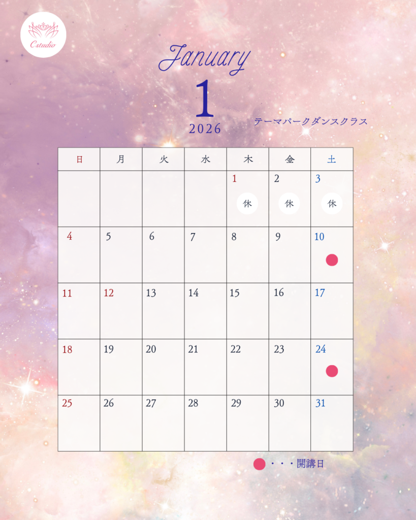 1月のスケジュール 2025 / 12 / 26 お知らせ 新年は1月4日(日)からクラスがスタートします!*月一回夜のBalletエクササイズクラスは19日(月)19:30〜開講いたします(ご予約をお願いします)